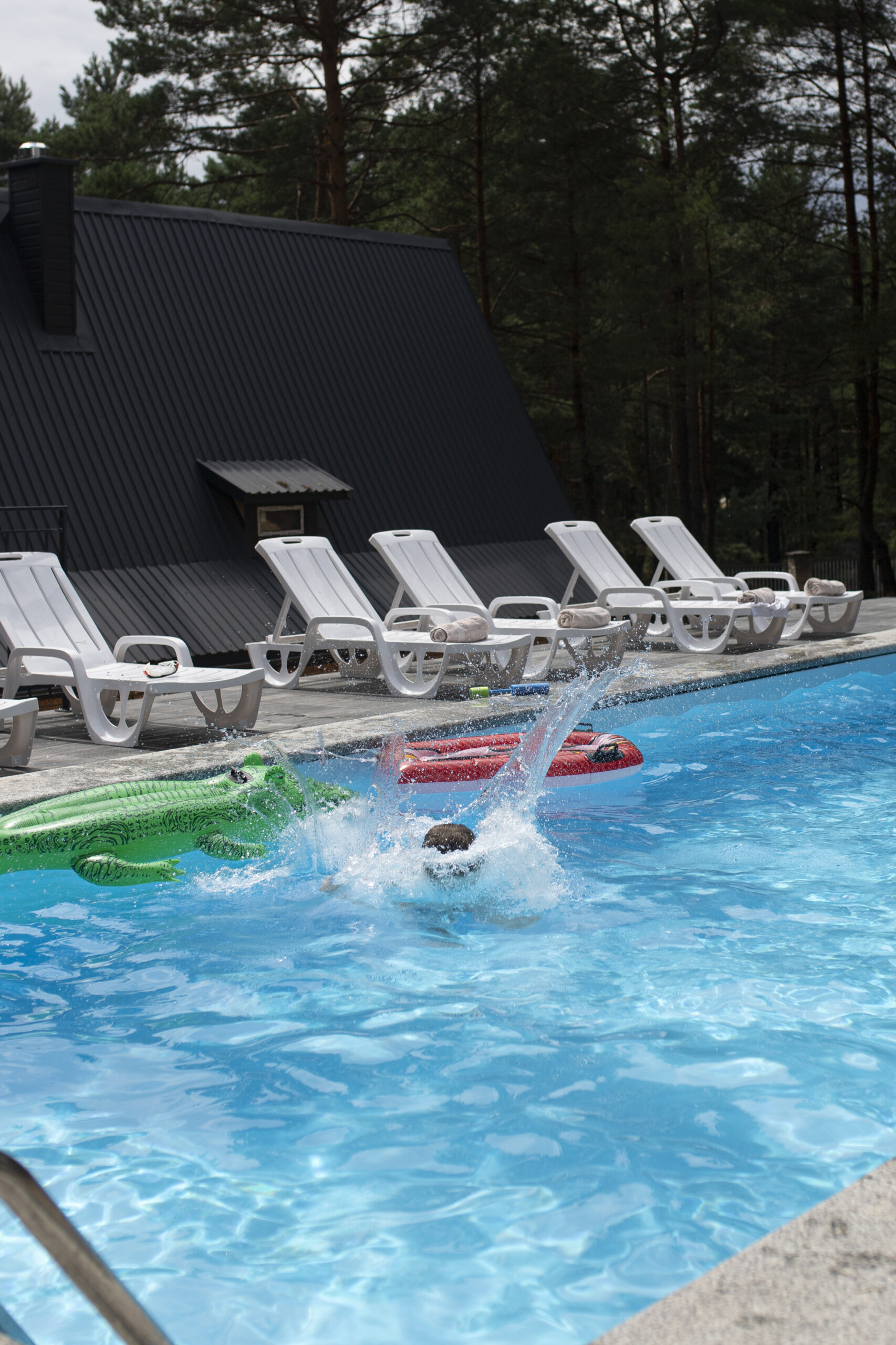 Dbamy o Twój komfort – oprócz wygodnego noclegu zapewniamy dostęp do basenu, miejsca na grill oraz przestrzeni na ognisko, abyś mógł w pełni cieszyć się relaksem na świeżym powietrzu.